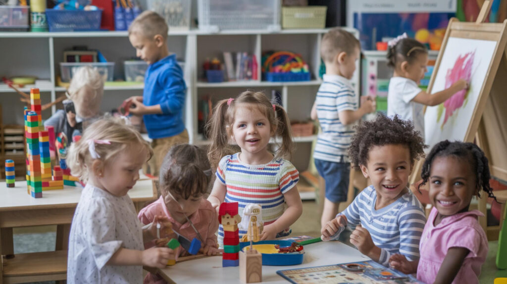 manche malen, andere bauen Türme oder suchen sich ein Buch für die Kuschelecke.